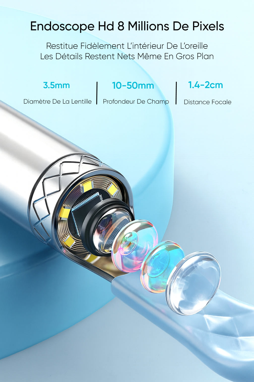 L'endoscope auriculaire CleareX offre une solution innovante pour l'inspection visuelle de vos oreilles. Connecté à votre smartphone via WiFi, il vous permet de visualiser en temps réel l'intérieur de vos canaux auditifs sur un écran haute définition.